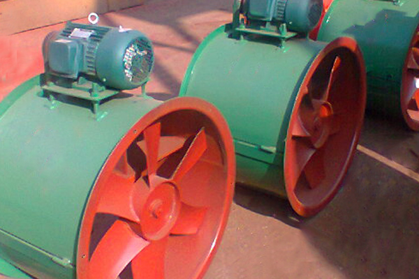電動機(jī)安裝在風(fēng)筒上部,有可調(diào)的電機(jī)座板支承電機(jī),并能調(diào)節(jié)中心距。全部采用三角皮帶傳動。軸承箱固定在風(fēng)筒中央密封的防護(hù)筒內(nèi)與介質(zhì)隔離。